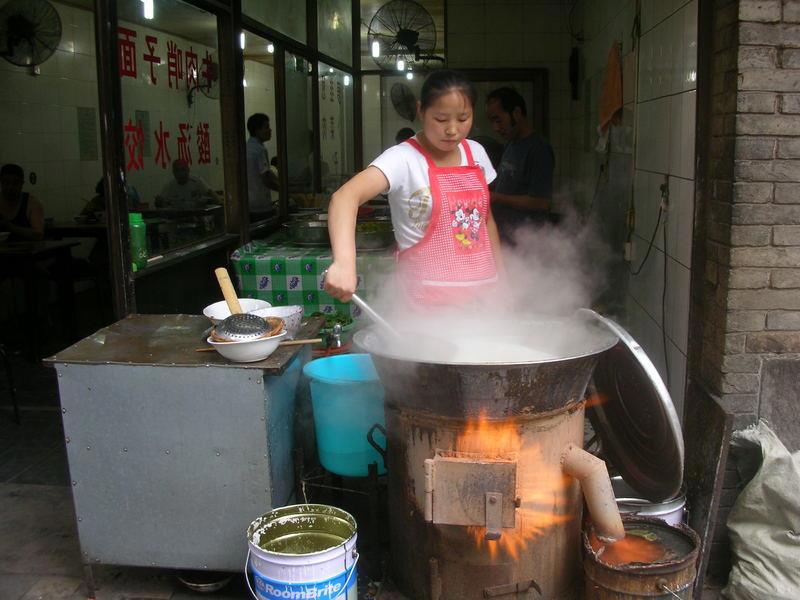 Решал вопросы пищевой ностальгии в Китае благодаря уйгурам. При том, самым диким уйгурам – конкретно бородатым, на вид вылитым ваххабитам, регулярно делавшим намазы на кухне в своей столовке. Периодически брал у одноглазого «халатника» (без грима мог играть роль злого басмача в любом советском фильме!) отличный плов и лаваш – это азиатское блюдо таки ж вполне близко и привычно нам. Помню, огромная тарелка плова без мяса стоила 3 юаня, а с мясом – 8 юаней (то есть 15 или 40 руб. на наши деньги 2009 года). Еще нравилось, что как у китайцев в народных харчевнях доливают чай в чашки, так в уйгурской харчевне ходил мальчик с огромным чайником и из этого чайника непрестанно наливал всем жующим посетителям в пиалы бараний бульон, одновременно ловко (там прям реально требовалась почти цирковая ловкость!) кидая в те же пиалы мелко нарезанный зелёный лук… Это было именно бесплатное приложение к заказанным блюдам. И очень вкусное приложение!