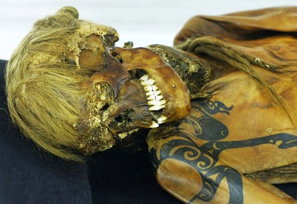 А так… историки с политиками посоветуются и скажут "истину" с полной научной уверенностью, как это обычно бывает. Что? Нужны примеры? Есть они в ассортименте… Возьмём, например, историю «принцессы Укока» (она же – «Алтайская принцесса»). Раскопали в 1993 году могилу. В ней обнаружилась мумия женщины в скифских наколках. За эту находку сразу ухватились местные националисты (нужно полагать не без подсказки из-за рубежа). Её мигом объявили «принцессой» и чуть ли не прародительницей всех местных монголоидов. Даже имя её «вспомнили». Причём то, что ни содержание могилы, ни всевозможные анализы останков, включая генетические, даже рядом с этими заявлениями не стояли, успокоить проплаченных «борцов» не смогли. Власти тогда, проявив волю, мумию на место таки не вернули и раскопки пазырыкских курганов продолжили, послав "борцов" куда подальше и правильно сделали, однако дело на этом не закончилось. Показываю всего два фото. Есть ещё фото самой мумии, но там волос нет, хотя в одном описании прочитал - светлые. А вот реконструкция внешнего вида этой рано умершей молодой женщины. Обратите внимание – волосы в реконструкции «политкорректно» потемнели.