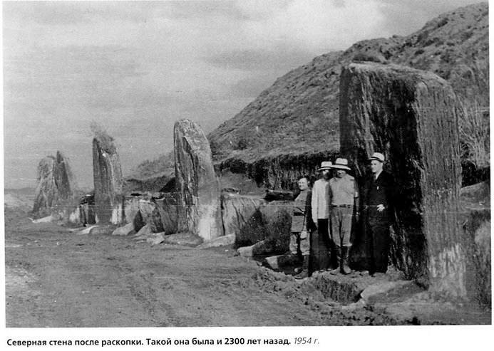 Эти самые раскопки Большого Салбыкского кургана под руководством С.В. Киселёва проводились в 1954-56 годах. Кстати обратите внимание на каменную кладку поверх мегалитов на втором фото. Ни на макете-реконструкции, ни на месте этих камней сейчас нет. Хочется задать специалистам, которые занимаются этим историческим сооружением вопрос: и как это понимать? Однако полагаю, что в ответ будет просто молчание.