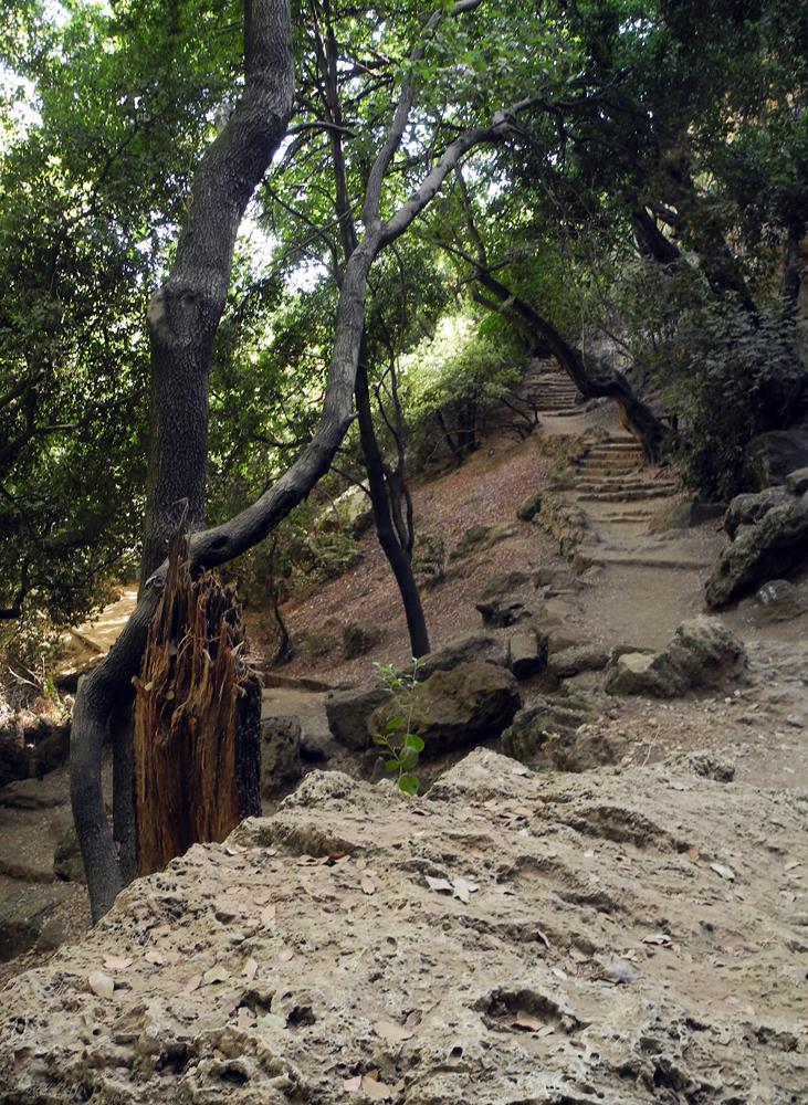 Дорога к водопаду живописная, тенистая по большей части, что очень приятно при температуре 35, и, поскольку круто вниз, ступеньками по большей части. К ступенькам жителю Хайфы не привыкать, но они явно не рассчитаны на рост полтора метра, и это хуже(((