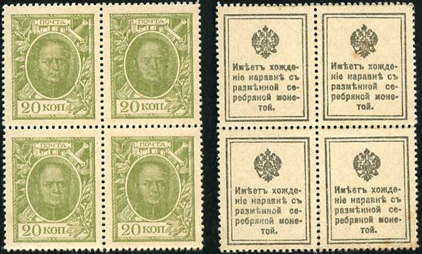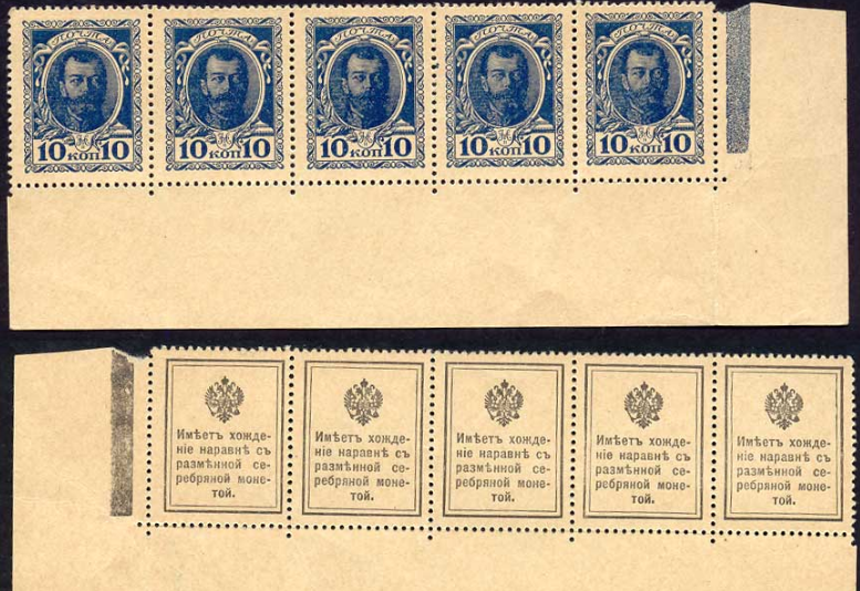 Автор: Куковякин Сергей АнатольевичКакой технологией практически любой попаданец ежедневно пользуется? Деньгами. Нужны ему эти символы обмена для приобретения еды, пищи, одежды. Вот мой ГГ сейчас в начале 1916 года по России на поезде едет, на станции в буфет заглядывает, из кармана серебряный двугривенный достает... Я даже слышу как кто-то из читателей кричит:"Не верю!" Правильно делает. В обороте разменного, впрочем как и банковского, серебра нет. От слова совсем. Народ его изъял из обращения и припрятал до лучших времен. Чем же пользуются? Марками. Они официально сейчас в обороте вместо монет. Вот такие.