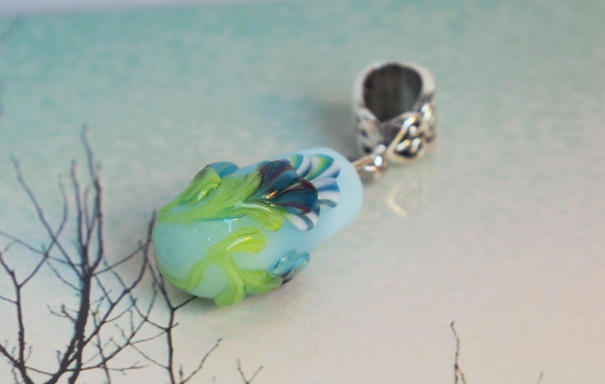 Я увлекаюсь изготовление стеклянных бусин на горелке, так называемый лэмпворк, так что цветы будут стеклянными и моей работы.