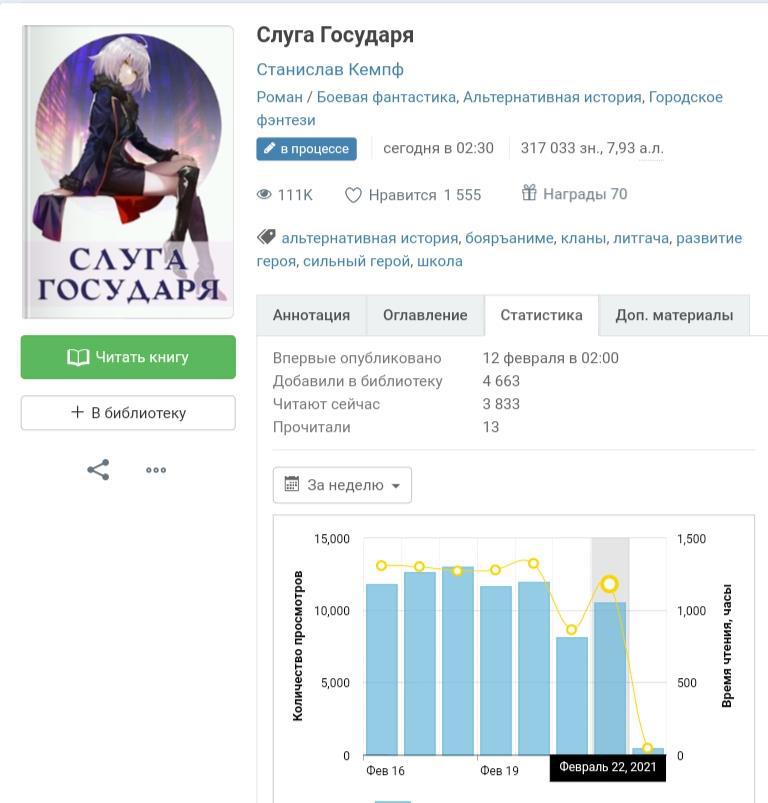 3. Вера. На Ат - Leiry Derry. Свежий аккаунт на ЛН, первая книга. Книга встала в ГН на третьи сутки.
