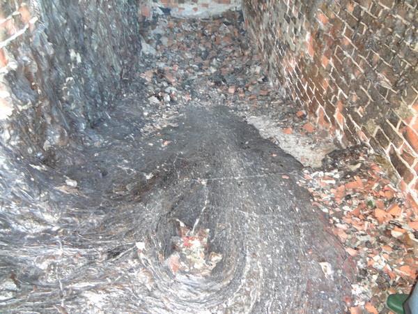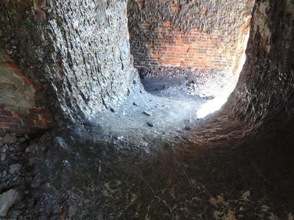 Это засстывший расплавленный кирпич. Естьтв системе фортов Кронштадта такой, в котором кирпич оплавился и стек. По одним рассказам - туда в подвалы сливали излишки мазута, которые как бы флот израсходовал, а он не израсходован вот тут и заныкали, а потом загорелось, по другим - испытывали в форте зажигательные смеси. Но факт налицо - потеки кирпича.