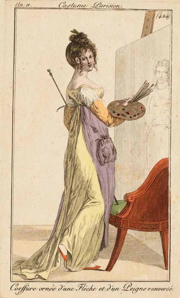 С 1797 по 1839 годы в Париже издавался "Journal des dames et des modes". Это издание обычно состояло из восьми страниц текста и одной или двух цветных вклеек с изображениями костюмов, как женских, так и мужских. Журнал выходил каждые пять дней и на пике популярности имел тираж около 2 500 экземпляров. В каждом номере рассказывалось о последних новостях, которые могли быть интересны женщинам, описывались аксессуары типа шляп, шарфов, перчаток, вееров, лорнетов и т.п. Составитель также информировал своих читателей о парижских спектаклях, концертах, выставках и наиболее популярных местах для прогулок.