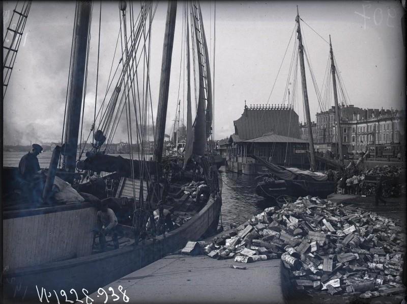 Ленинград. 1929 г. На набережной лейтенанта Шмидта. Финские лайбы, привезшие дрова.
