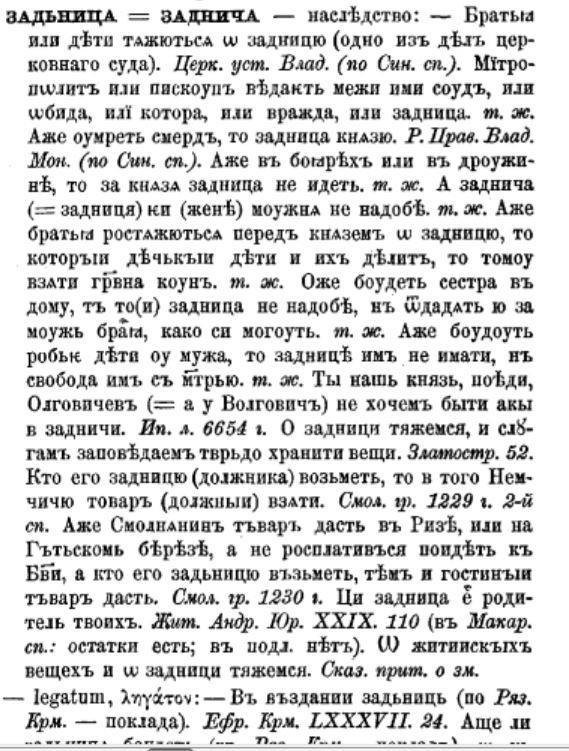 Я думаю, вы уже догадались, что такое "задница" в древнерусском языке.  Если еще не догадались, помедлите немножко и подумайте еще раз: задница - это то, что после смерти человека кому-то передается. Конечно, это "наследство"! То есть, то, что усопший оставляет позади себя.