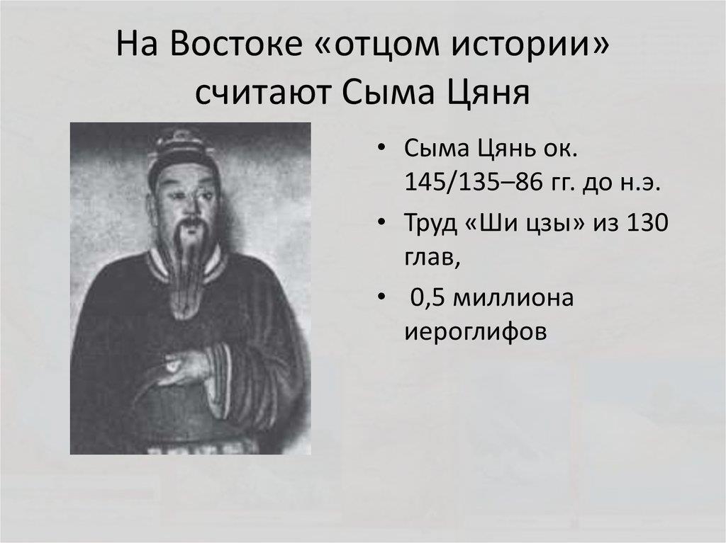 Автор: Хатка БобраСыма Цянь (司馬遷 пиньинь Sīmǎ Qiān), историограф Китая (2 в до н.э.), автор "Ши Дзи" ("Исторические записи"). Нестор, Геродот Китая.