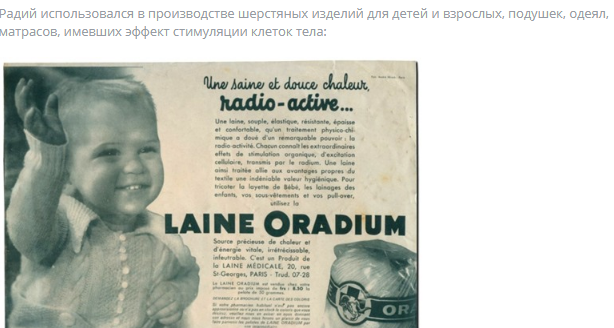 Автор: Куковякин Сергей АнатольевичТема радиоактивности и товаров народного потребления в первой половине двадцатого века вчера до конца не раскрылась. Хоть и помогали мне и пути указывали:) Сегодня продолжим. Жалко ведь своих попаданцев - пишешь-пишешь его, а он раз - напился радиоактивной водички и череп его под пальцем мнется... Ещё несколько из того, что попаданцу лучше не покупать - здоровее будет...