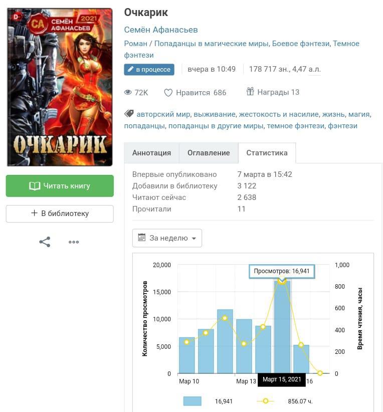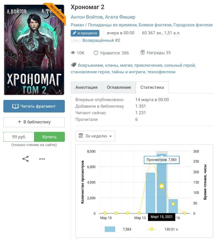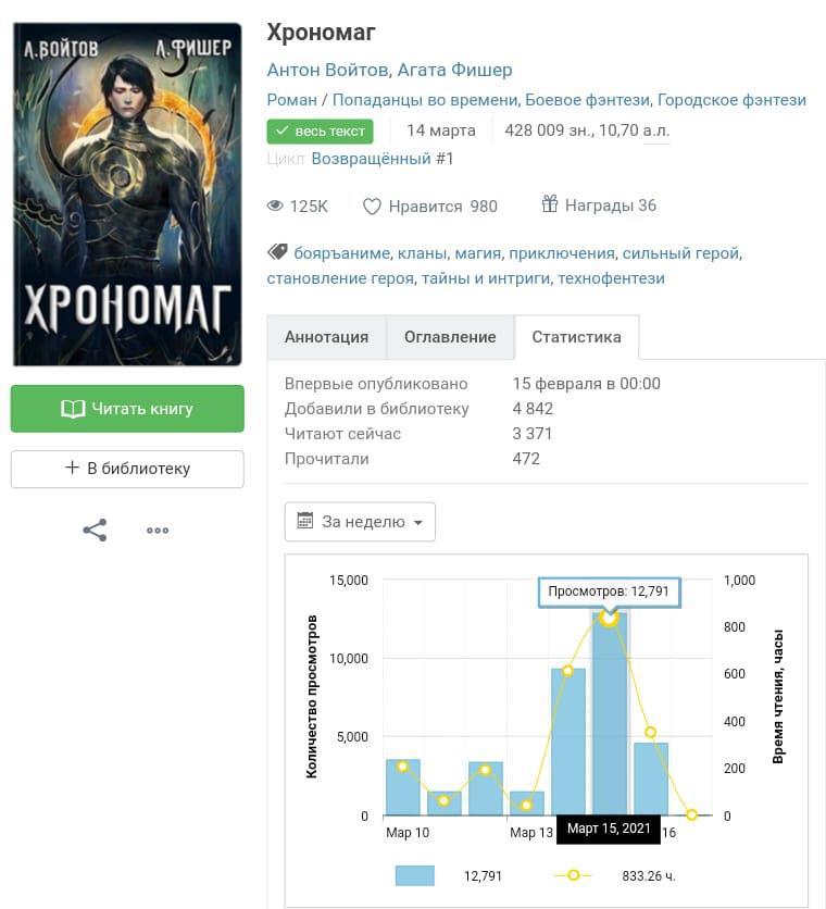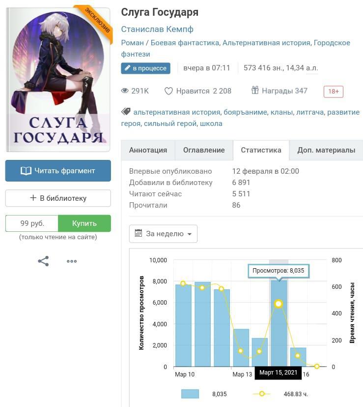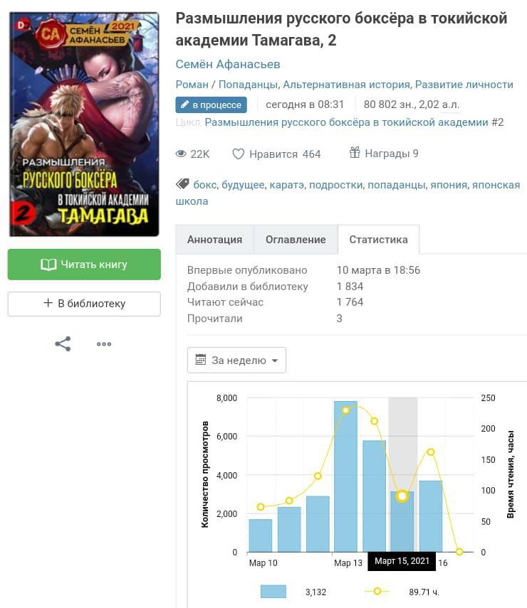 15 марта 2021 года второй том этого романа стал лучшим на АТ и в отношении популярности и в отношении продаж.