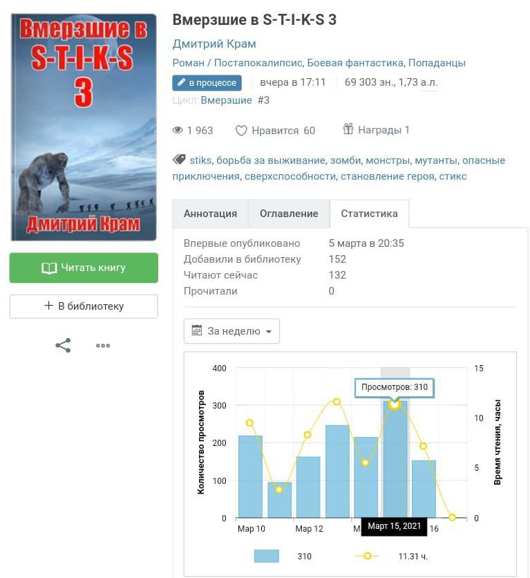 12. Дмитрий Крам. На момент старта лучший результат Димы был 1917 библиотек почти за год, с 29 марта 2020 года на его книге "Вмёрзшие в S-T-I-K-S".