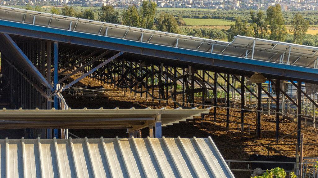 Обратите внимание - вентиляторы в коровнике, при том, что это просто навес без стен. Коровам тоже нужен комфорт в летнюю жару