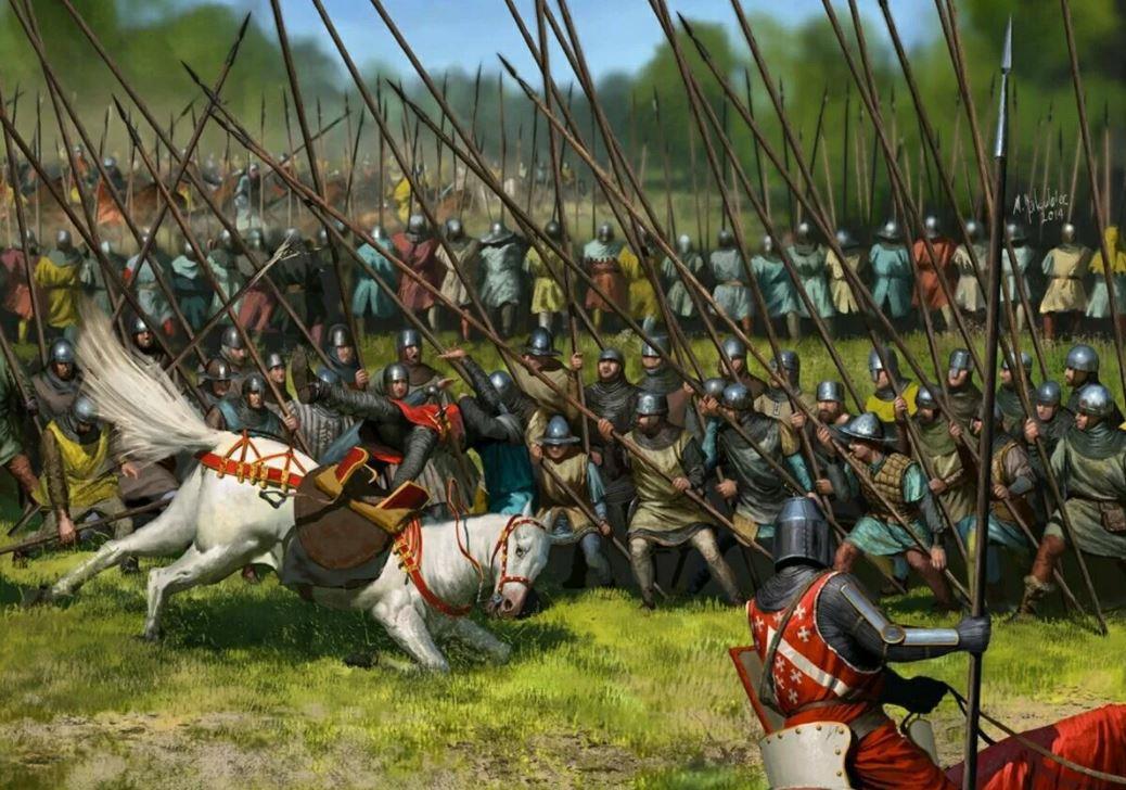 2. Экономически Англия была намного богаче Шотландии. Она опиралась в своем развитии на мощную промышленность и сельское хозяйство, сформировавшееся за 300 лет, после вторжения Вильгельма Завоевателя, а также на торговые города (Лондон, Бристоль и др.) на юге. Англия была демографическим насосом Европы, и ее население непрерывно росло за счет миграции из Скандинавии, севера Германии, Франции и даже Италии. Шотландия оказалась на торговом отшибе со слаборазвитым сельским хозяйством. Тут стоит вспомнить, что английская территория – это равнинная и плодородная земля с весьма умеренным климатом, имеющая отличную дорожную сеть, построенную еще римлянами, а шотландская территория – каменистые горные хребты с минимумом дорог и общинным укладом сельской жизни. Как следствие на протяжении всего конфликта одним из доминирующих факторов было технологическое превосходство английской армии над шотландской. Англичане имели тяжело-бронированную рыцарскую кавалерию, мощную, великолепно вооруженную латную пехоту и самое главное – лучших в мире лучников, вооруженных самым совершенным на тот момент «валлийским длинным луком». Шотландцы им могли противопоставить только плохо защищенную пехоту (чаще всего мобилизованную или собранную от кланов) и легкую кавалерию. Как следствие основным оружием шотландцев были копья, цепи, колья и волчьи ямы, а основное военное построение – шилтроны. Имея намного больше финансовых ресурсов, англичане постоянно перекупали отдельных шотландских вельмож и рядовые кланы на свою сторону, а также усиливали войска наемниками. Английский флот на протяжении всей войны безраздельно господствовал на море, обеспечивая внезапные десанты в самую глубину территории противника. Кроме того англичан довольно решительно поддержали валлийцы и существенно ирландцы.