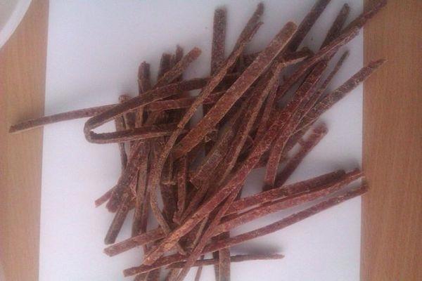Солёно-сушёные полоски лосося. На самом деле — аналогично тунцу: продукт сурими
