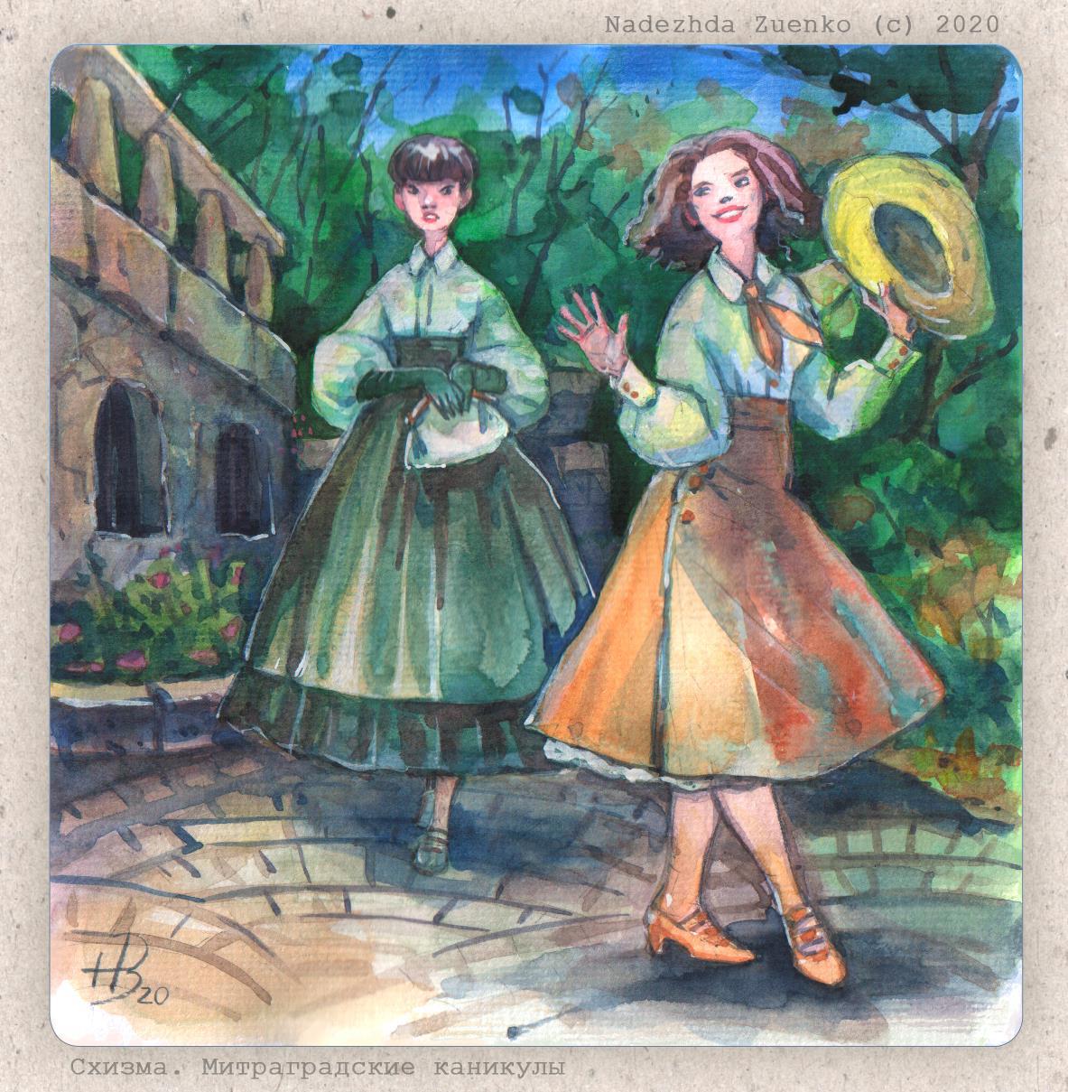 11. Девицы Меркадер - Тая и Поля (Аполлинария) на каникулах у бабуль. Поля - сиротка, семейные выяснения отношений тоже бывают вредны для здоровья. Серьёзная девочка, ответственная. В отличие от охламонки Таис ).