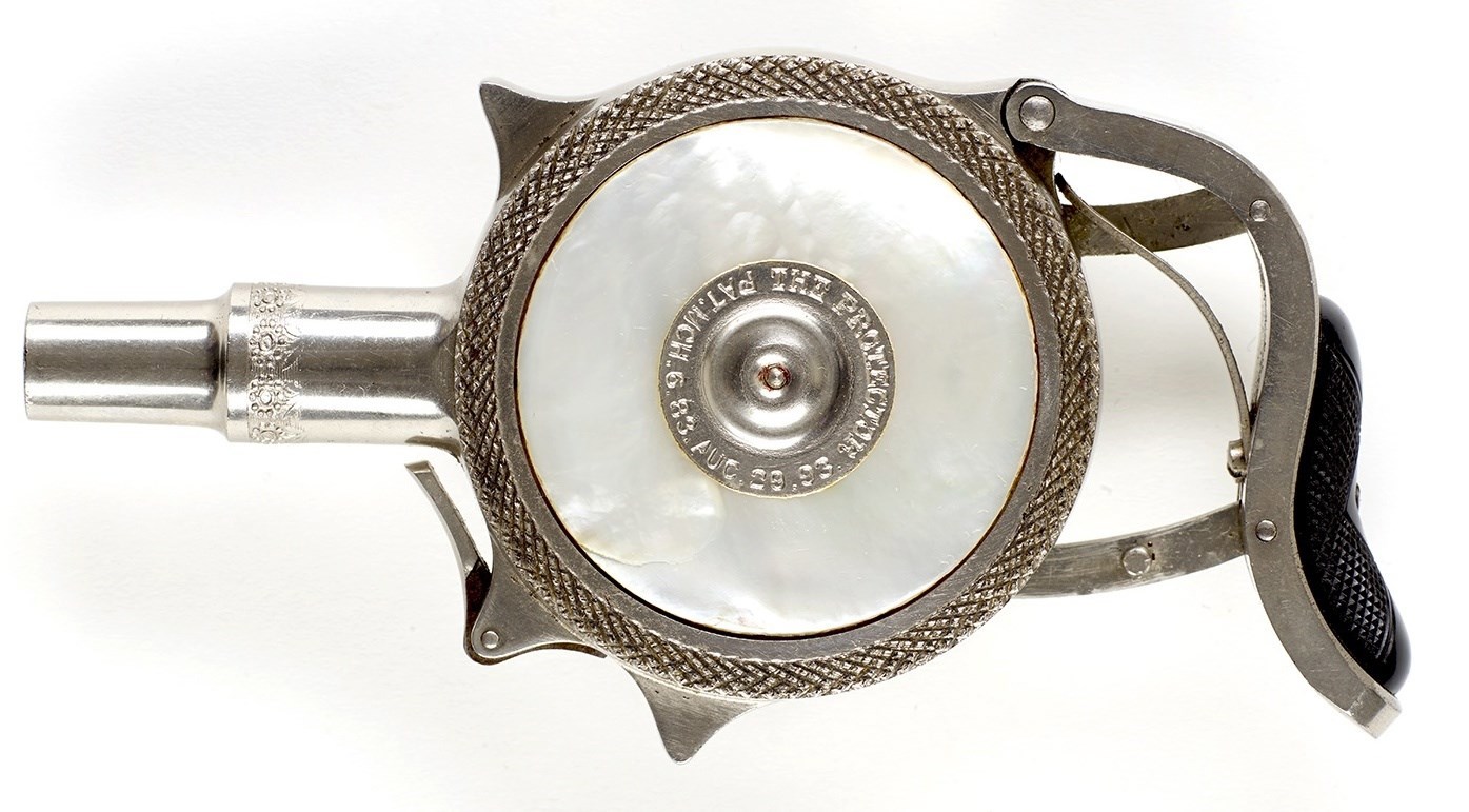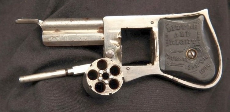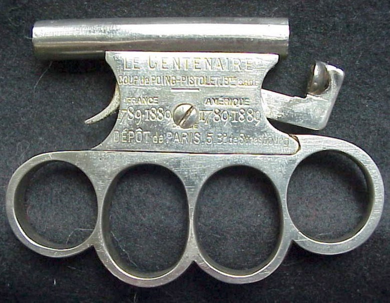 А вот ещё в Америке во времена Кольта, кроме «дерринджеров» сделали ещё одну однострельную стрелялку, которую тоже можно было использовать, как вполне удобный кастет (кстати слово "кастет" означает что-то типа "проламыватель головы"):
