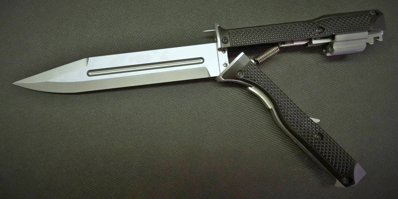 Жаль только, что в нём всего один патрон и тот шумный, с огнём во время выстрела и вонючий порохом – после. Наш-то НРС получше будет – он бесшумный, беспламенный и если нужно, то им ещё можно проволочное заграждение порезать. Его все знают, поэтому показывать не буду. Я лучше покажу другой, американский. Он и брутальнее других, и патронов в нём больше, потому что в ручке целый револьвер спрятали. Ручка, правда, толстая получилась. Но, с другой стороны, такой ручкой если по балде врезать – мало не покажется: