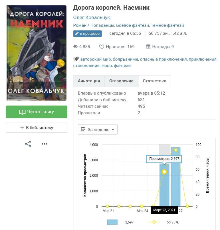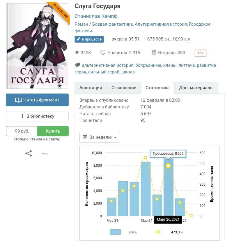 15 марта 2021 года второй том этого романа стал лучшим на АТ и в отношении популярности и в отношении продаж.