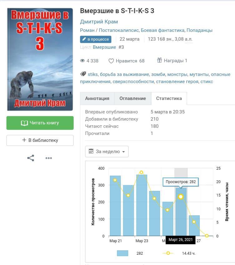 12. Дмитрий Крам. На момент старта лучший результат Димы был 1917 библиотек почти за год, с 29 марта 2020 года на его книге "Вмёрзшие в S-T-I-K-S".