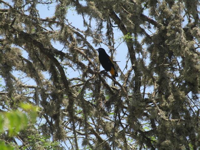 То, что раскачивается на дереве – не экзотические плоды, а гнезда желтоспинных - в некоторых источниках желтопоясничных черных - касиков. Птиц красивых и громко поющих, причем на разные голоса.