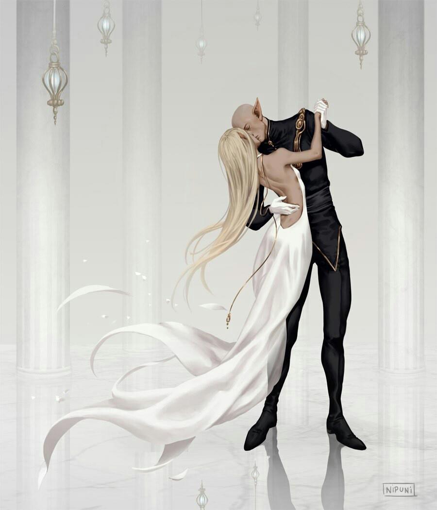 Прелесть - лысый эльф и девица без ног. Пара прекрасно друг к другу подходит. (Обладателей подобных дефектов прошу не обижаться).