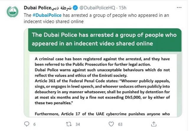 Автор: Ангел 888Дубайская полиция арестовала участниц «непристойного» видеоролика, распространенного накануне в социальных сетях. На видео группа обнаженных девушек позирует фотографу на балконе одного из высотных зданий в районе Dubai Marina. Задержанные девушки оказались из России, Украины, Беларуси и Молдовы.