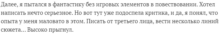 Автор: ТимурПредыстория: знакомый, увлекающийся литературой, скинул мне некоторые фрагменты из интервью с успешным начинающим писателем, творящим в жанрах фэнтези, ЛитРПГ и фантастики, в каком контексте - не скажу.