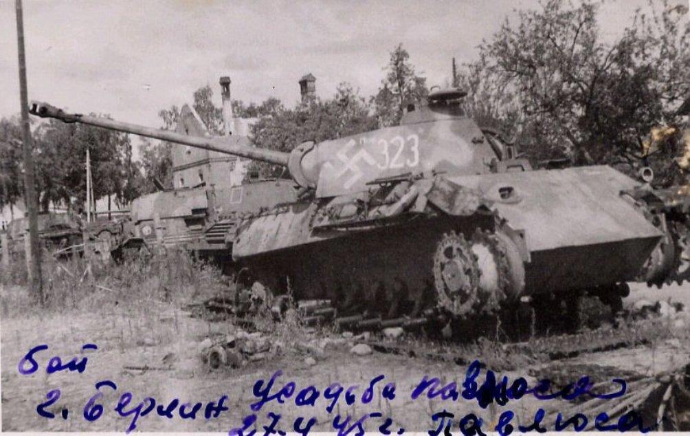 Две подбитые пантеры. Бойцы наши позируют. Судя по опущенному стволу - задняя сгорела.