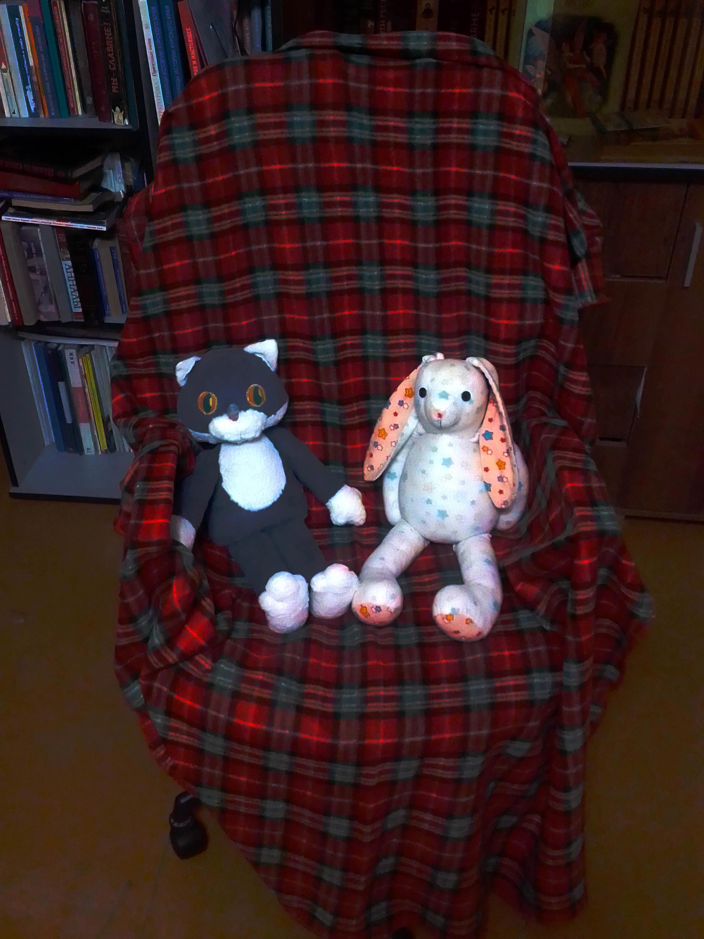 Ну и для поднятия настроения талисманы героев из романа - Мяв и Митька. Попросились из книги, сшила. А вот Мишку никак не сделаю, потому что для него нужны диски для лап и головы, глаза и нос, которые ну никак не удаётся купить.