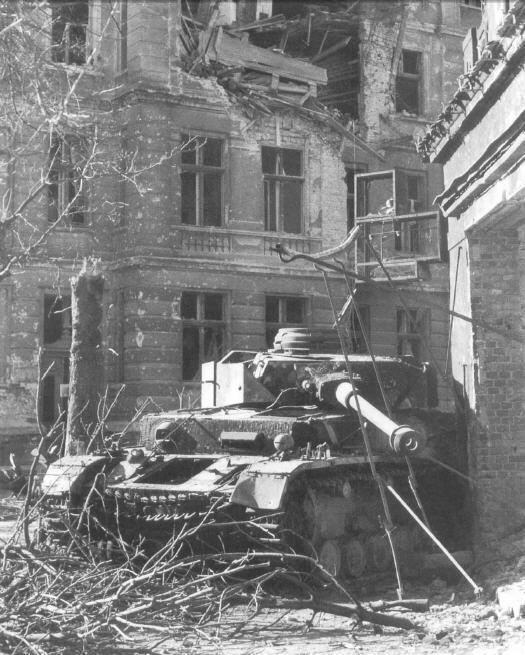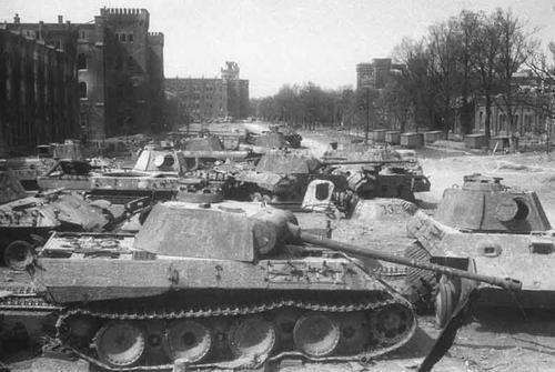 Наш сгоревший ИС у Зееловских высот. Подбитая дальше СУ-76 очевидно систему балансировки сохранила.