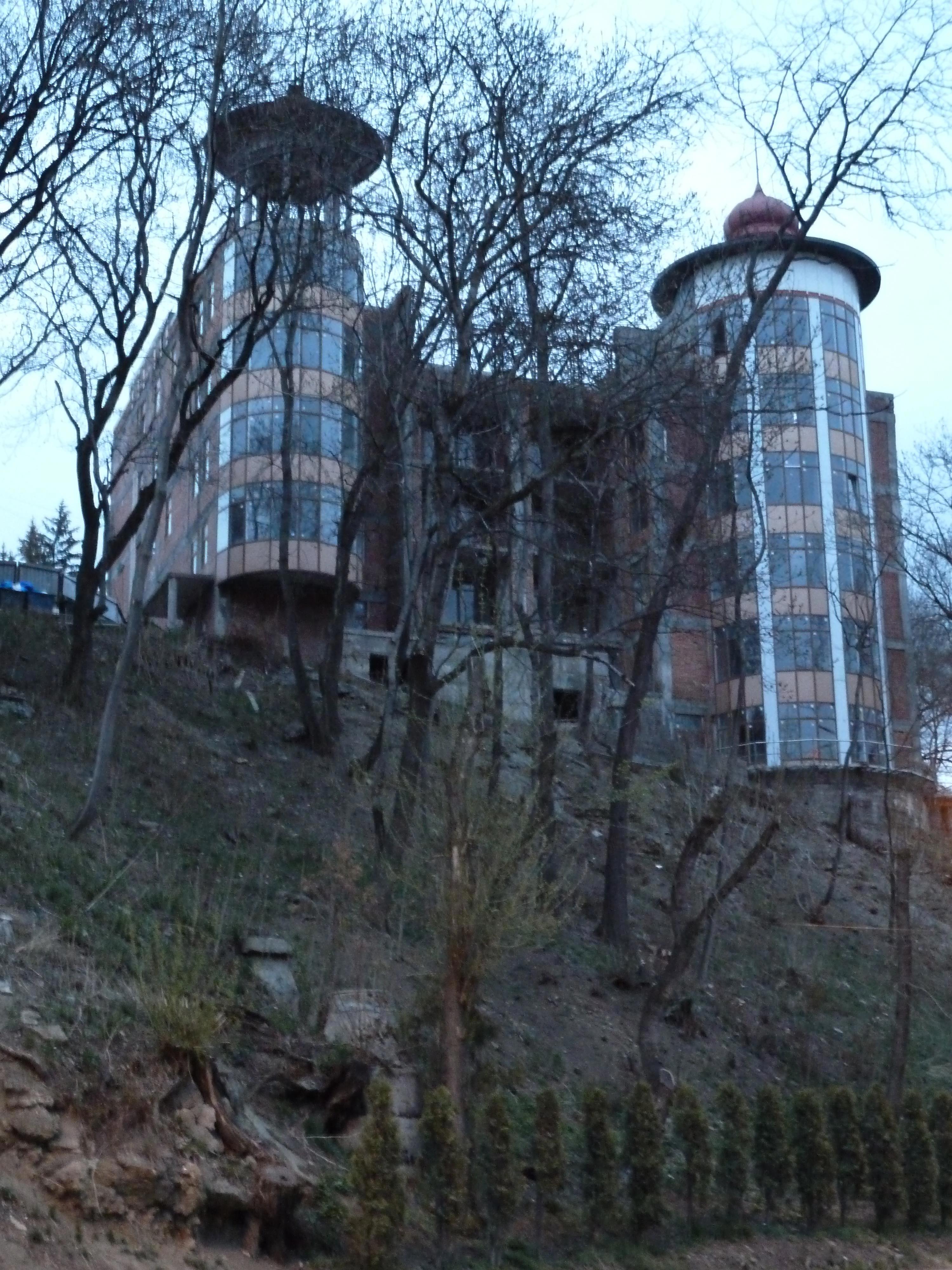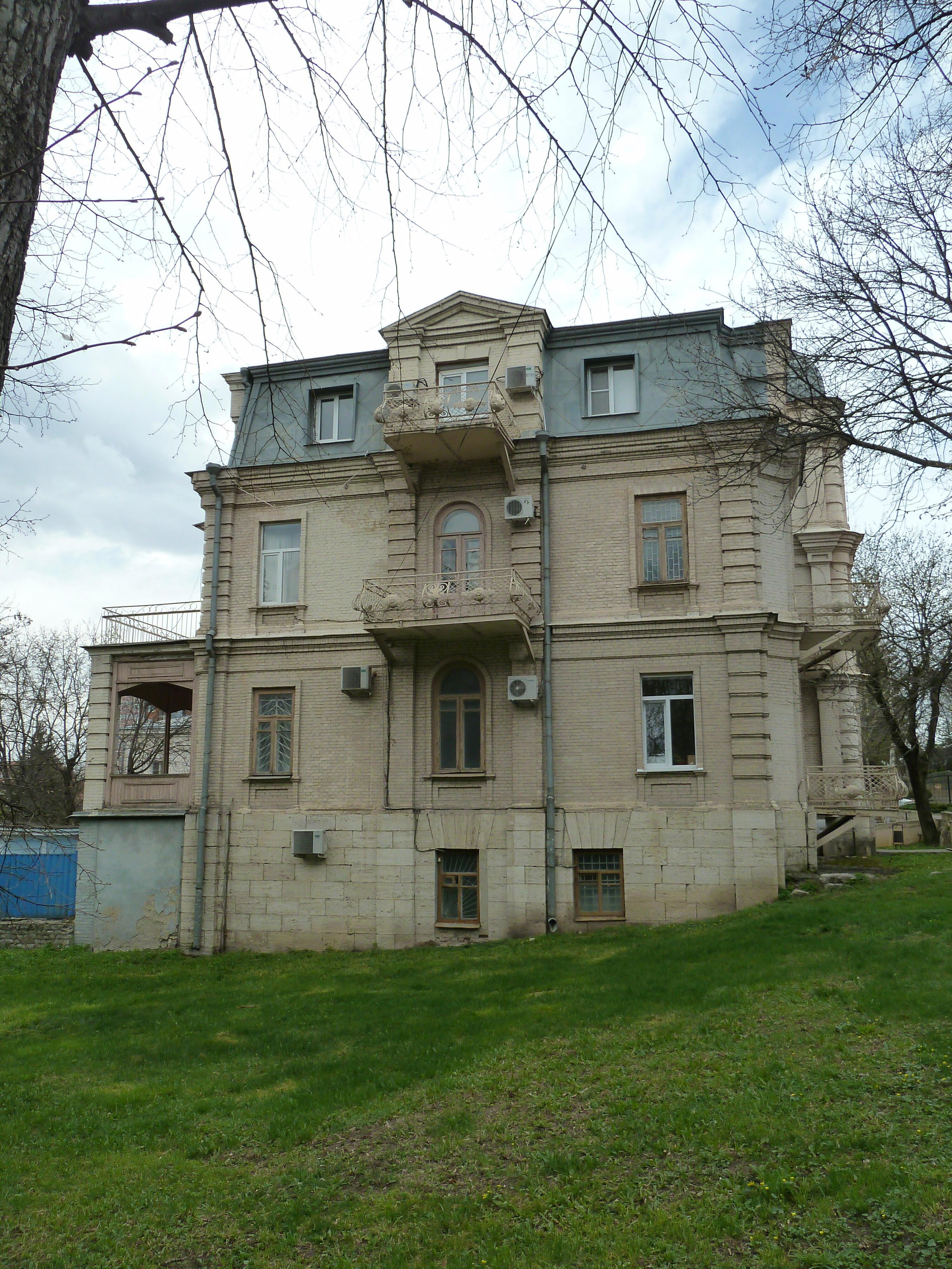 Просто здание (уже не в парке). Хорошо видны совершенно разные стили и материалы на каждом этаже каждого крыла: