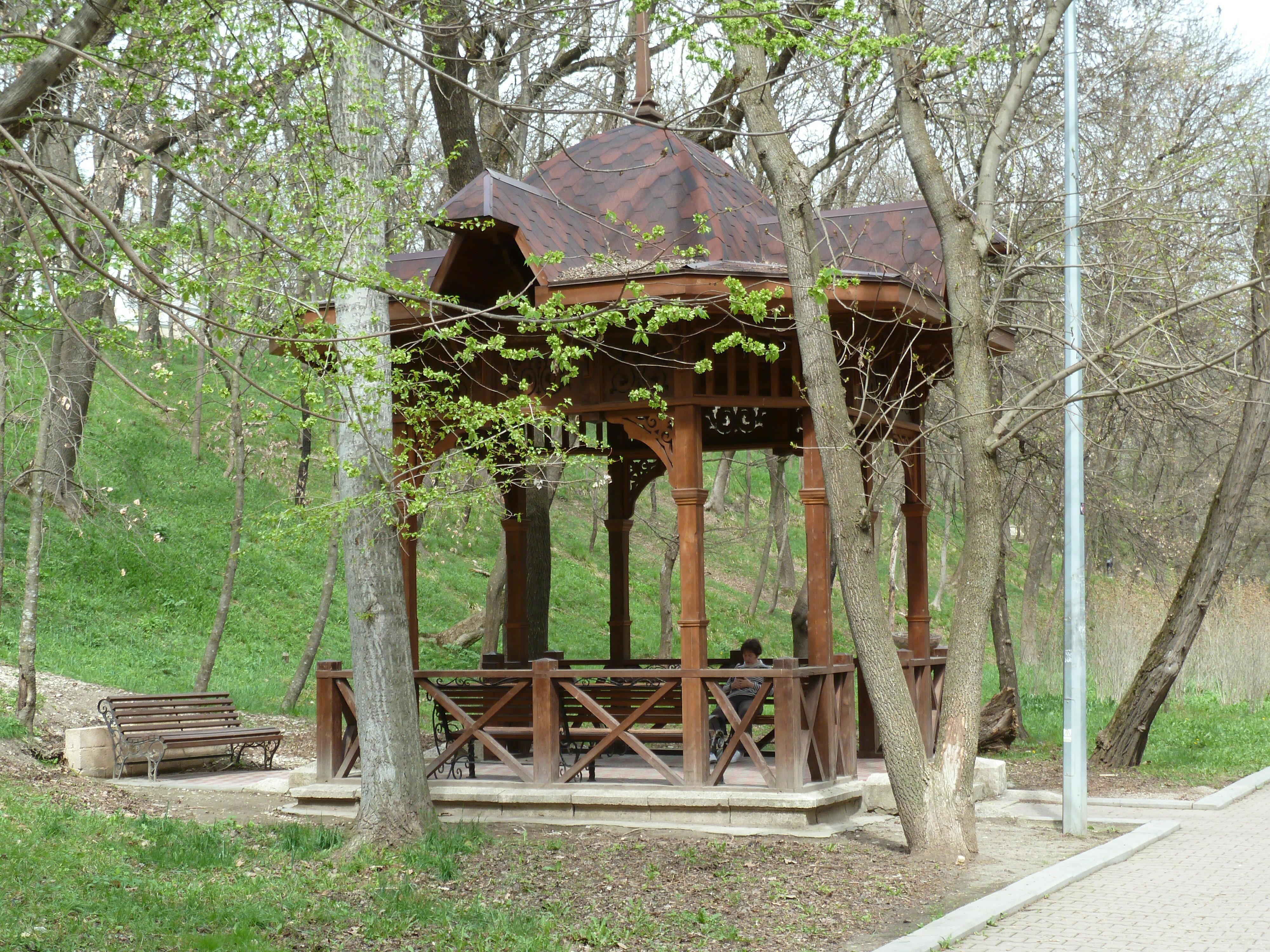 За парком — санаторий "Виктория", со своей большой площадью, полной деревьев, беседок, и разных забавных мест:
