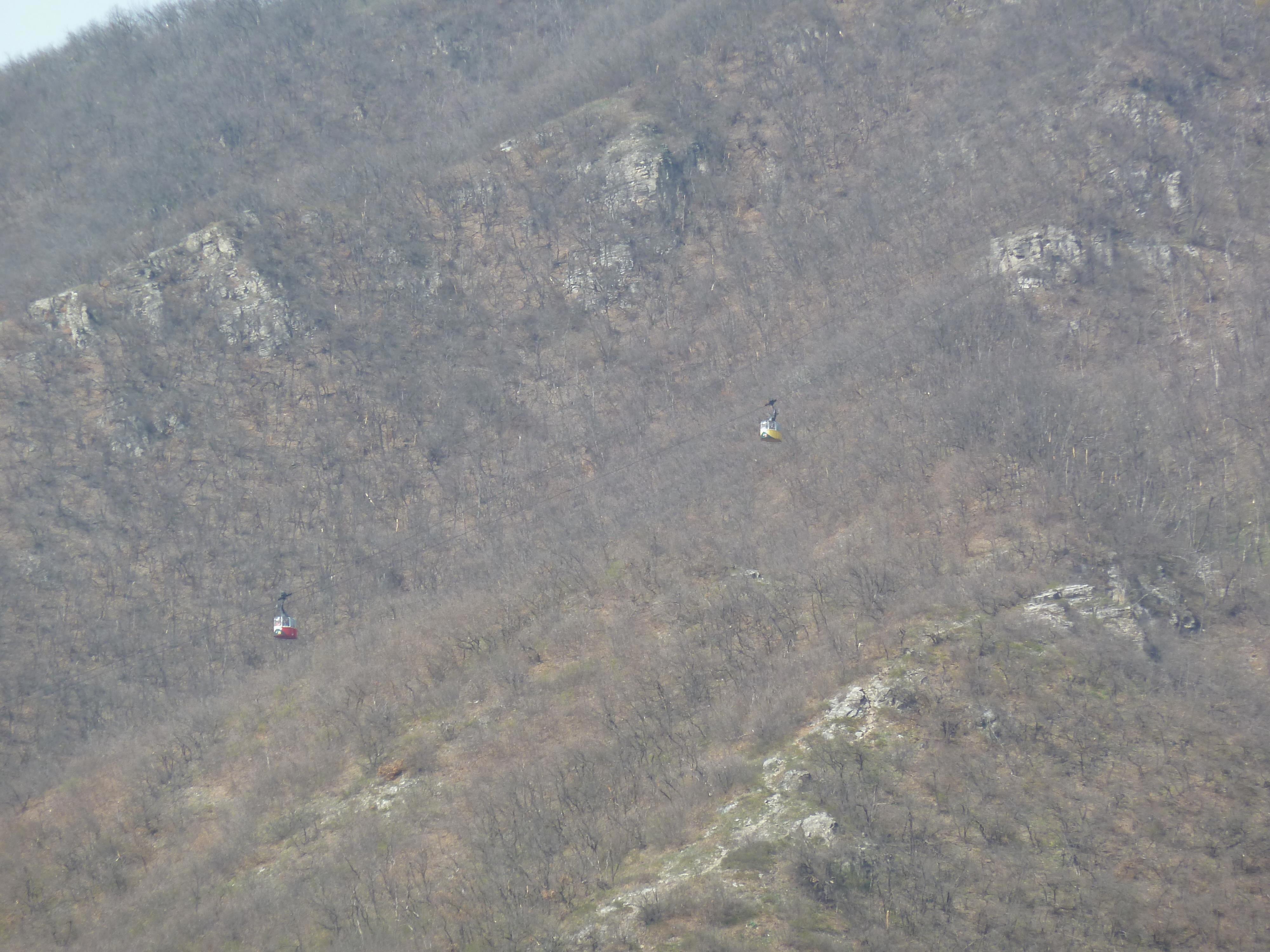 Забраться на него можно по склону, часа за два, или по канатке с милыми вагончиками:
