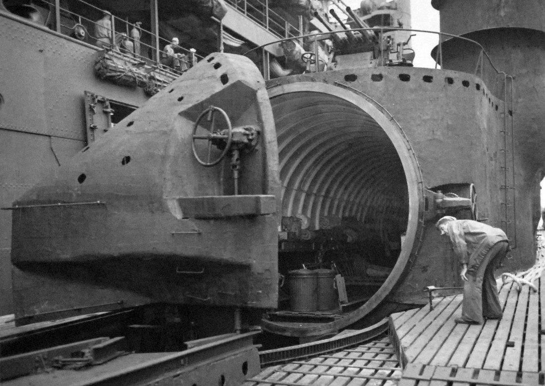 Эстафету строительства гигантских подводных лодок подхватили японцы, которые в тот период свято уверовали в свою несокрушимую великость. И, понятное дело, по примеру своих западных учителей, японцы решили расширять границы своих владений. А как расширять границы, если у вас нет чего-то самого большого? Вот... поэтому они построили два больших надводных корабля с большими пушками типа «Ямато» (про него и так много написано) и ещё целых три больших подводных лодки типа «Сен Току» (Sen Toku). И это были не просто подводные лодки, а даже всамделишние подводные авианосцы. Каждая из них несла в своих ангарах... вот, кстати, этот ангар в открытом положении: