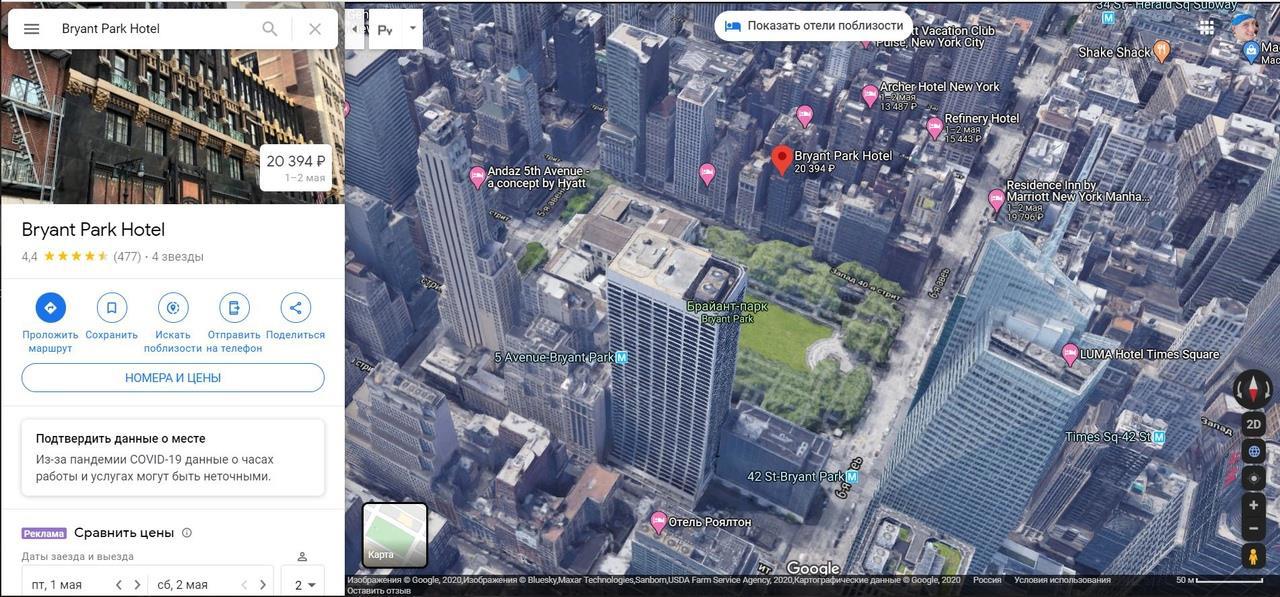 Американ редиэйтор-билдинг / Брайант Отель (в настоящий момент). Расположен между 5-й и 6-й Авеню на 40 улице. Сплетение готики и арт-деко. Построен в 1924. Высота — 103 метра (338 фута), 23 этажа.