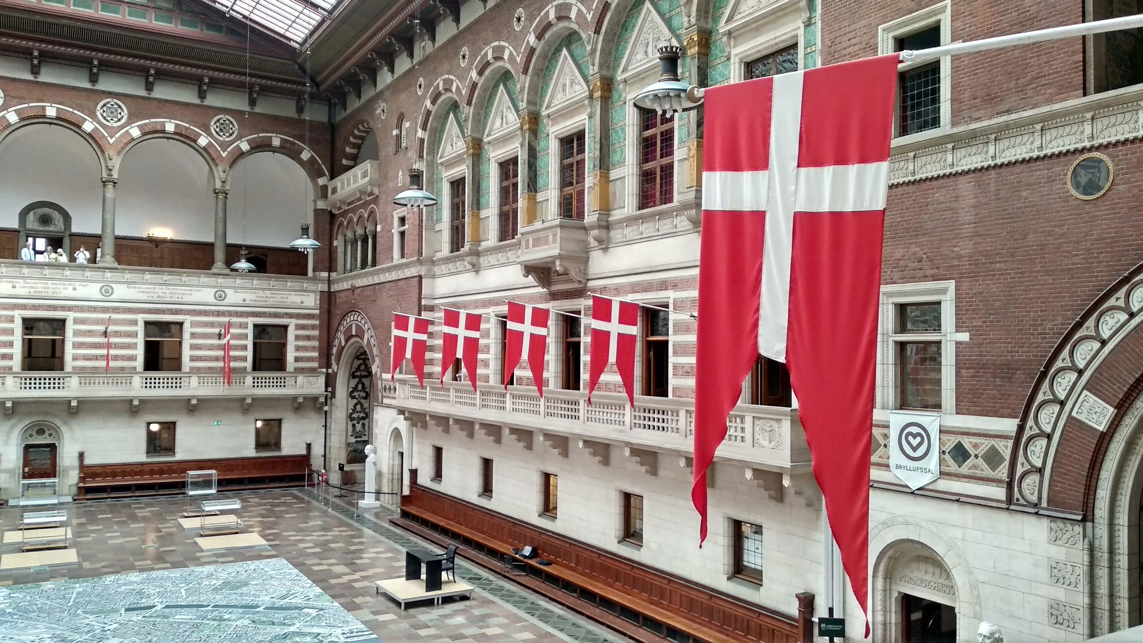 Мы всегда путешествуем свободно, без всяких турпакетов и терпеть не можем экскурсоводов. Любим зависнуть в одном месте на неделю, бродить там, покупать еду в обычных супермаркетах, кататься на общественном транспорте, чтобы ощутить так сказать, пульс той локации, куда мы приехали. И вот, примерно на четвёртый день пребывания в Дании, мы приуныли. Уселись на центральной площади в непонятках - куда же нам сходить. Какое-то странное состояние прострации и тупости охватило нас. Тут, прямо на этой же площади, обратили внимание на городскую ратушу. Она красивая, посмотрите: