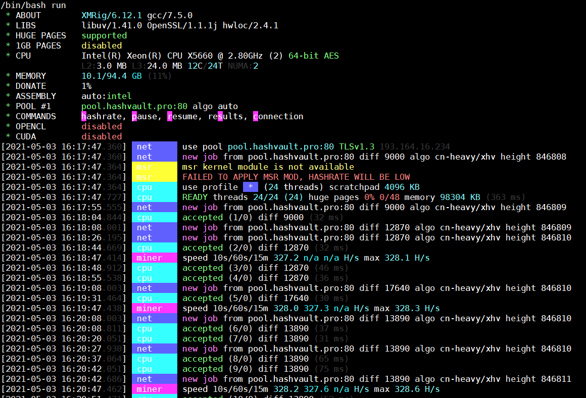 Посмотрел я на это, посчитал прибыльность и загрустил. 28-30 рублей в сутки. А потом вспомнил - есть же у меня доступ к одному серверу, который всё равно простаивает без нагрузки. Дай-ка я на нём помайню... Ну, или хотя бы посмотрю хэш-рэйт. Сервер, конечно, не чета моей домашней машине:
