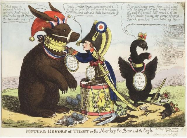 «Взаимные почести в Тильзите, или Мартышка, Медведь и Орёл» август 1807.