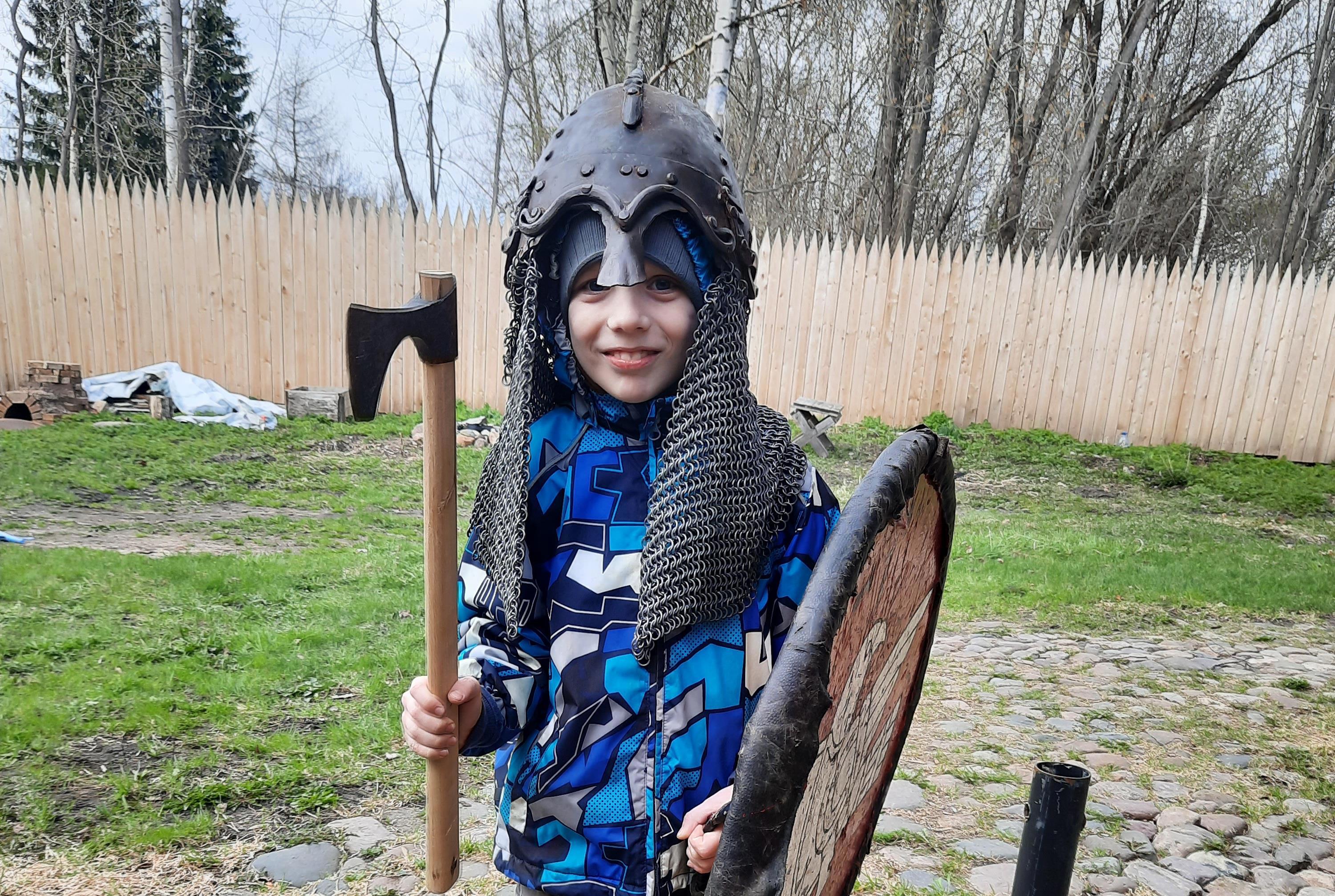 Еще у них есть ролевики, поэтому нам дали примерить шлем и выдали боевой топорик