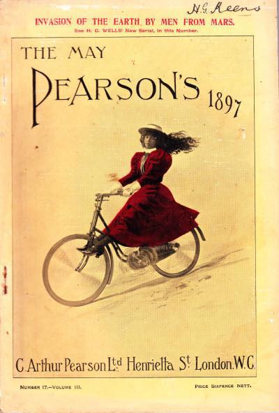 Рис. 1. Потерявшая управление девушка на моцыке с испуганным лицом летит к пруду... Тьфу, первое журнальное издание "Войны миров".