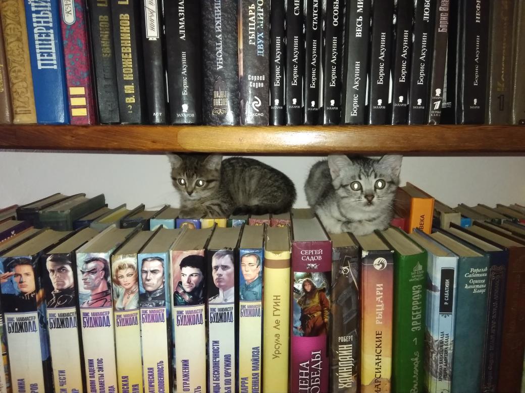 А это наши подниматели настроения — частенько сидят на коленях, когда я пишу. Но я держусь, и их няшность на тексте не сказывается! 😎