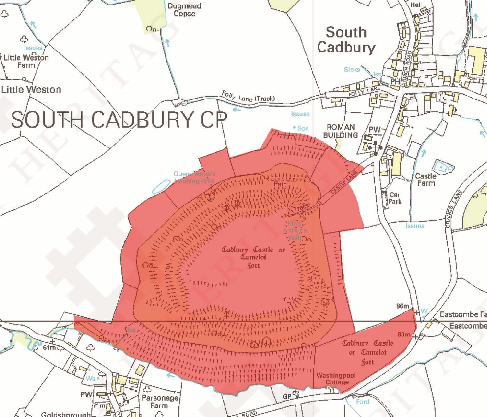 "Прямо к югу от церкви Сауз Кэдбери стоит Камелот. Когда-то это был прославленный город или замок, стоявший на высоком холме и превосходно защищённый самой природой... При пахоте здесь в изобилии находили римские монеты из золота, серебра и меди... Всё, что могут поведать на сей счёт местные жители, – это то, что в Камелоте часто пребывал Артур". (Assertio inclytissimi Arturii regis Britanniae, 1544 г.)