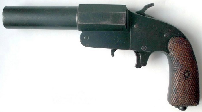 По другую сторону баррикад – в Германии тоже нашлось немало людей с нестандартным мышлением и кому-то из них попались на глаза ракетницы, которые грустно лежали никому не нужными на военных складах. Вид у них был грозный и не скажешь, что эта штука нужна для того, чтобы просто огоньки в воздухе зажигать: