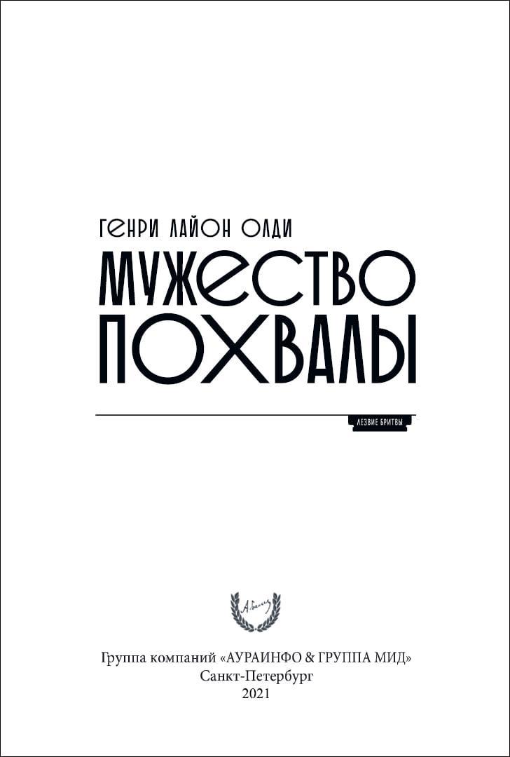 Выходные данные: Генри Лайон Олди. Мужество похвалы. Сборник публицистики. — СПб.: Группа компаний «АУРАИНФО & ГРУППА МИД», 2021. — 400 с. (Серия «Лезвие бритвы»).