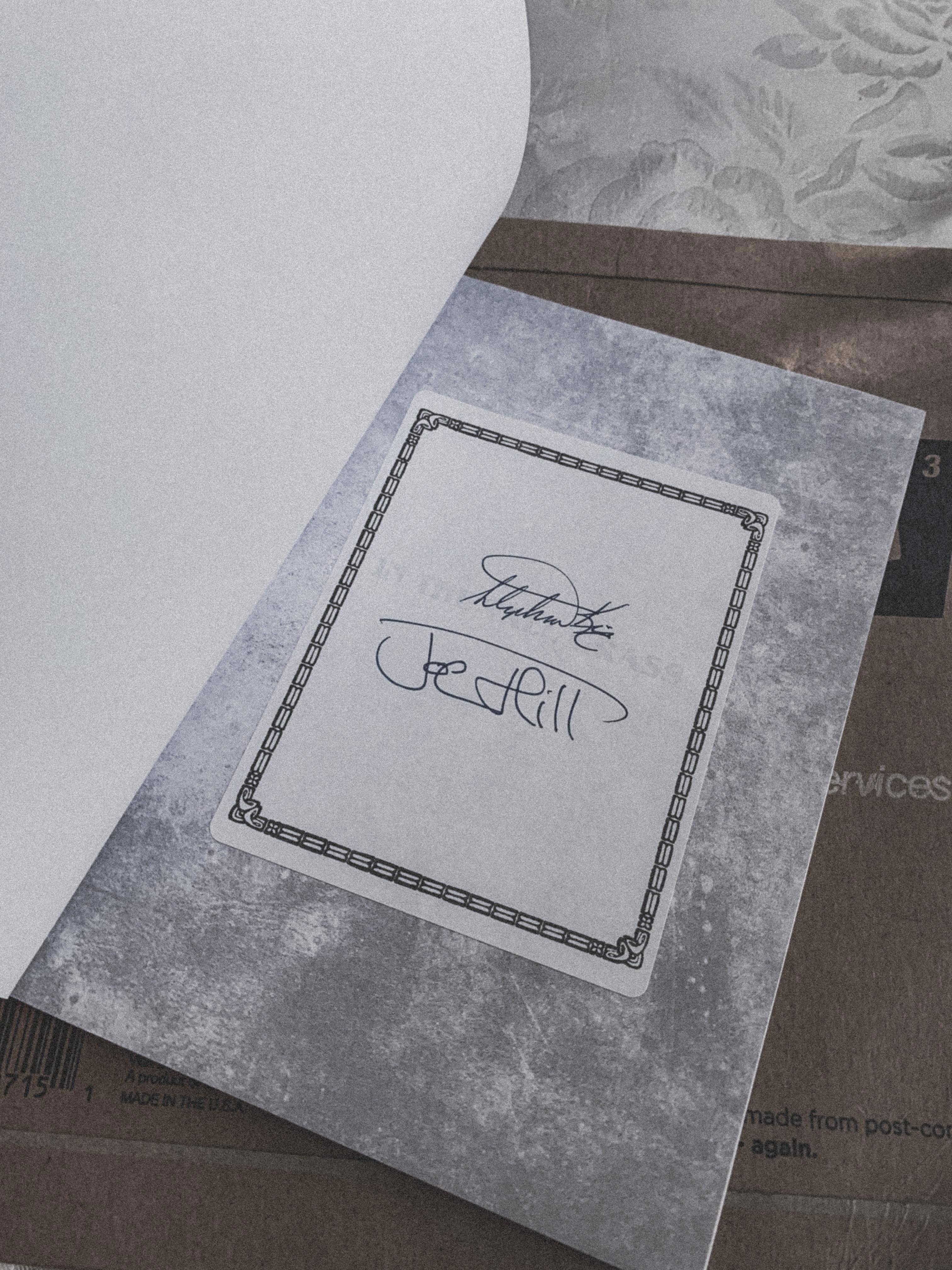 (Пссс! Кто не понял - это автографы Стивена Кинга и его сына Джо Хилла, которые вместе написали рассказ "В высокой траве")