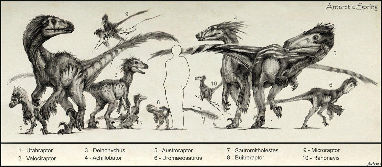 А это сравнение размеров. Мои зар-таги в сравнении с человеком это что-то около номеров 1 и 5. А "кри", которые напали на Ай-ю и её зар-тага - это номер 9, микрорапторы.