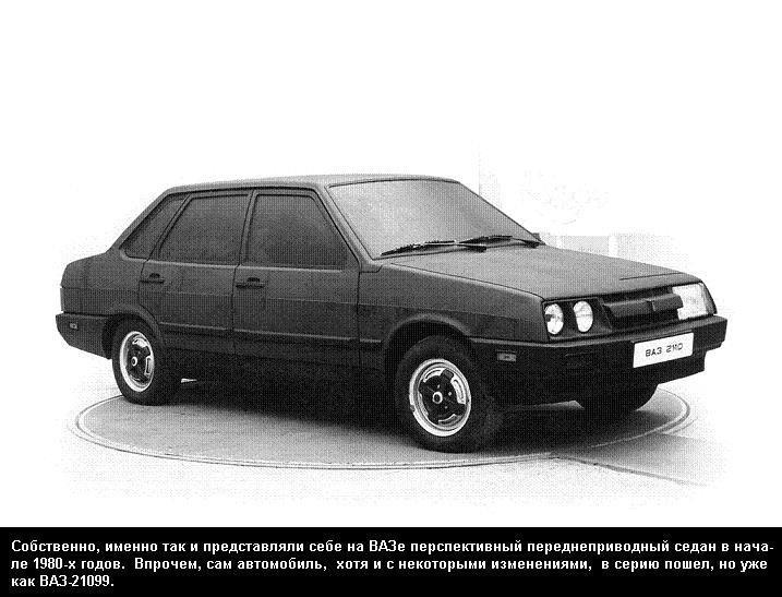 В те времена "зубило" еще только готовилось к серийному производству, общая концепция модели 2109 тоже была ясна - врезать еще одну дверь в кузов "восьмерки", и готово. А вот переднеприводный седан... эта перспектива была еще в зачаточном состоянии, и одним и вариантов продолжения семейства "Самара" (тогда еще - "Спутник") как раз и был переднеприводный седан, на стадии прототипа носящий индекс 2110. Впрочем, нам этот автомобиль знаком как самая крутая тачка начала 1990х годов - ВАЗ-21099.