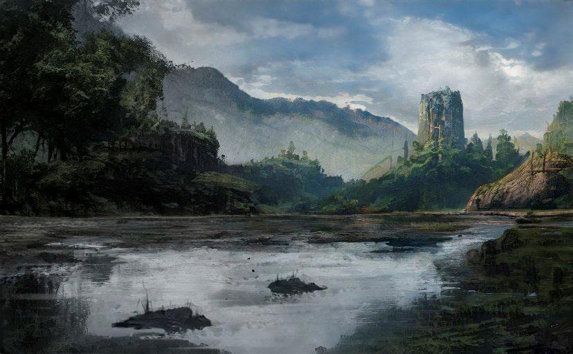 Неожиданно хорошо удалось болото хеммов вокруг заброшенного Старого Каралона. Тот же Artbreeder
