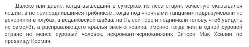 С точки зрения смысла и образности все ок – абзац четко описывает диспозицию, мир, знакомит с героем. Однако язык и стилистика оставляют желать лучшего. Во-первых, мне понадобилось несколько раз перечитать предложение, чтобы точно понять его смысл. Во-вторых, начало абзаца, с лешим, грибником, Лысой горой и змеем огневиком указывают на одну стилистику, а некромант Эйтерн Мак Хейлин – на совсем другую.