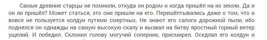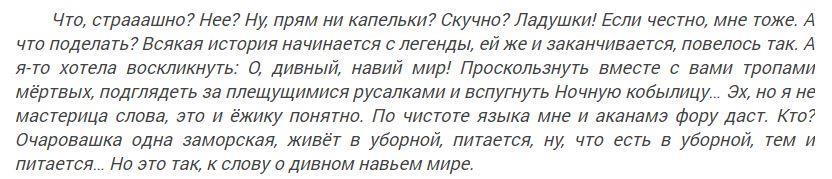Но ладно, несмотря на все это, история про некроманта, старцев, колдунью и бочку увлекает. Немного веет гоголевской «Страшной местью», в хорошем смысле. Однако, когда пик интереса достигает той точки, что можно почти закрыть глаза на стилистические ляпы, текст резко делает поворот на 180 и бьет читателя в лоб вот таким: